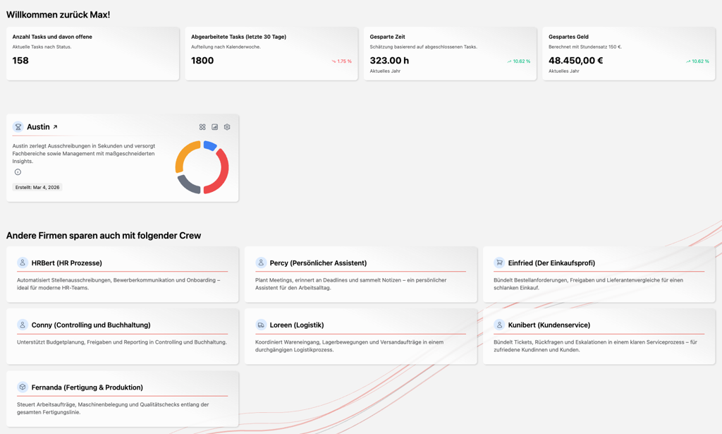 In Ihrer digitalen Box sorgt eine intelligente Crew dafür, dass Prozesse stabil, schnell und fehlerfrei laufen. Jede Rolle ist klar definiert. Jeder Ablauf optimiert. Jede Entscheidung basiert auf strukturierten Daten.